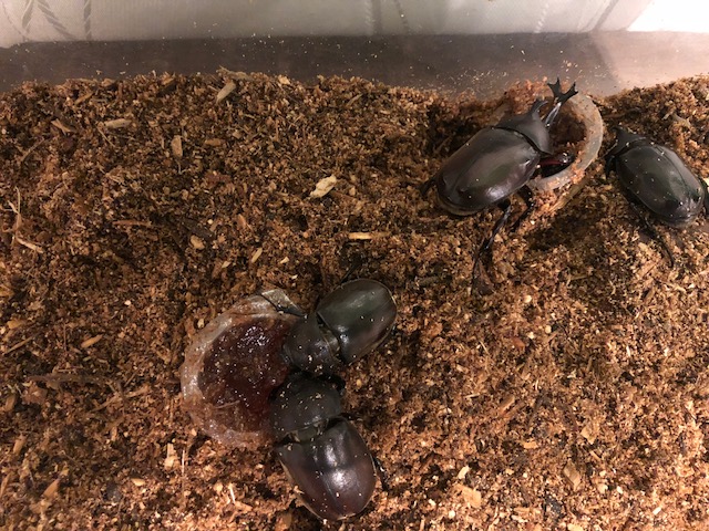 朝は全く姿が見えないので帰宅後の楽しみはカブトムシ観察です 🙂