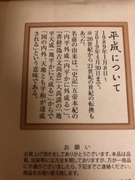 このまんじゅうの裏面には平成の由来もありました。