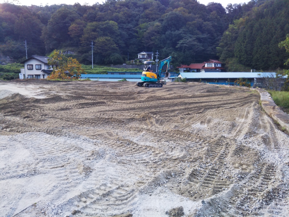 土を入れてパワーショベルで整地している作業です 😮